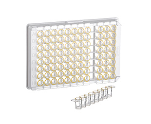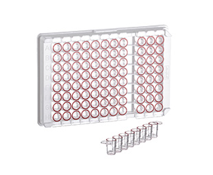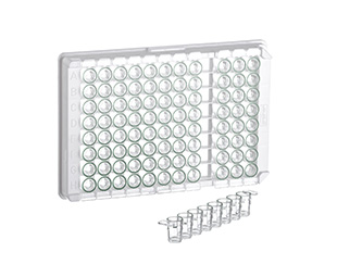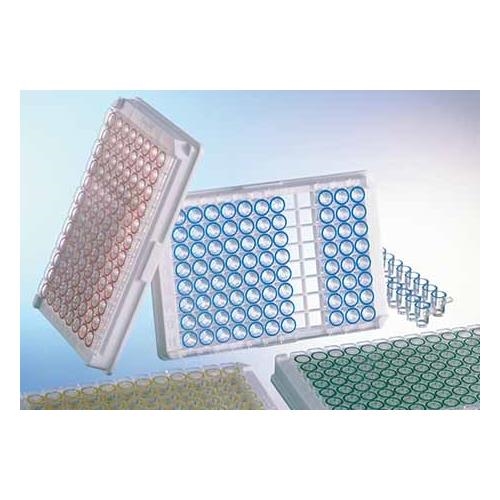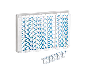 可拆卸形式的微孔板在诊断方面具有更大的灵活性。可以从支撑框架上取下单个条带,以便根据样本数量调整测试数量,而不是由所使用的微孔板规格预先确定。此外,单个条带可以根据不同的测试条件进行调整。我们的质量保证实验室通过 ELISA 方法确保我们免疫产物的质量。透明 MICROLON 产物适用于比色免疫测定,黑色 FLUOTRAC 板适用于荧光免疫测定,白色 LUMITRAC 板适用于发光免疫测定。该产物组合还包括用于免疫学应用的 C8 单孔可拆板。它们以 12 个 8 孔条带的形式提供,位于具有 96 个空间(12 x 8 矩阵)的支撑框架中。可以单独拆开各个孔(“单孔可拆"选项),因此可以根据样品数量精确调整执行的测试数量。"